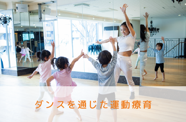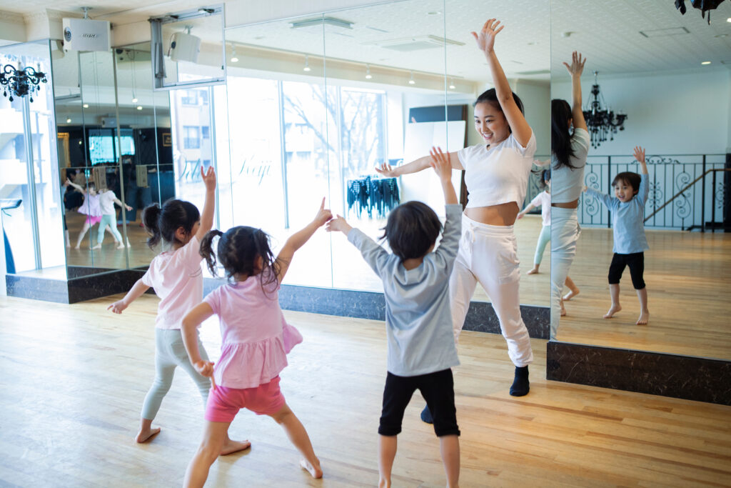 HIP HOPをメインにダンス講師によるレッスンを行ないます。ダンスは音楽に合わせて体を動かし、楽しく運動することが出来ます。友達と同じリズムを共有する事で「非言語コミュニケーション能力」も養う事も出来ます。そして練習をしてきた振付を保護者様に発表し、目標に向かう力や達成感を味わう事が出来ます。